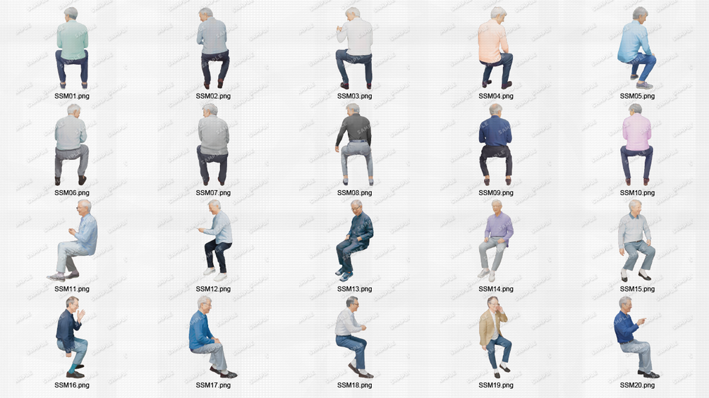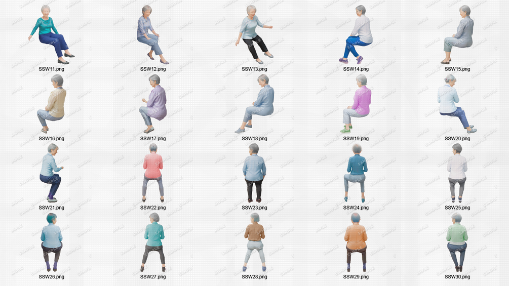 Architectural CG perspective People cutouts illustration Elderly people, sitting, 60 Cuts